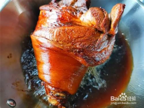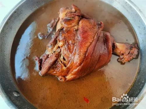 到时间后,关火,不要打开锅盖,焖半小时,到时间后,再大火烧开,转小火炖制半小时,关火,再焖制半小时。到时间后,把肘子捞出装盘,淋上一些酱汁,酱肘子就做好了
