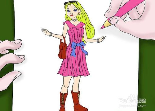 12把它涂上颜色!用黄色来代表她的头发,她的眼睛是蓝色的,衣服和配饰上的粉红色也会有变化。