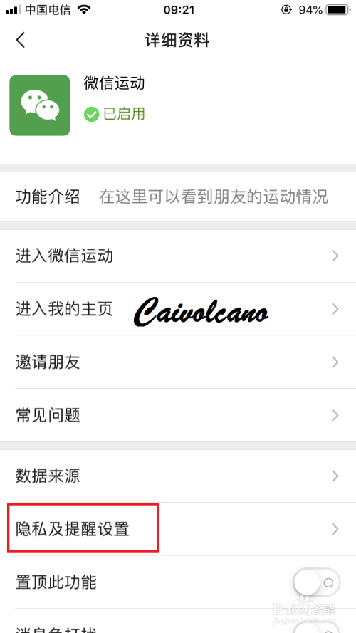 在上述页面中往下可以看的一项是“隐私及提醒来源”,打开进入到隐私与提醒设置页。