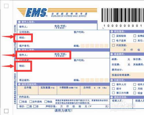 我们看一下一张标准快递单需要填写的内容,里面有联系人(收件人、寄件人)电话、详细地址等的很多信息。
