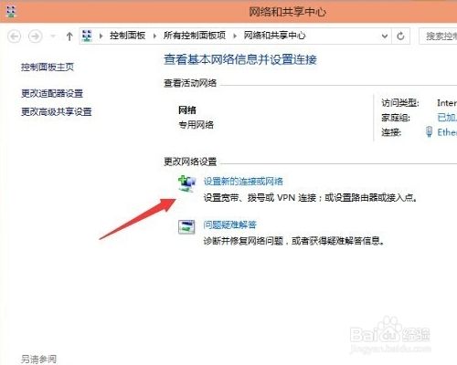 进入到网络和共享中心之后,点击设置新的连接或网络选项。