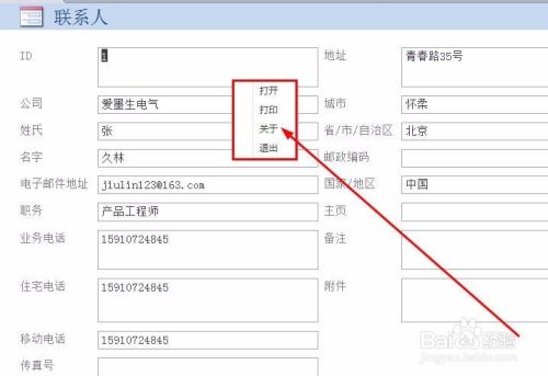 下面举例说明如何在数据库中创建一个自定义快捷菜单,并将该菜单附加到“联系人列表”窗体中。