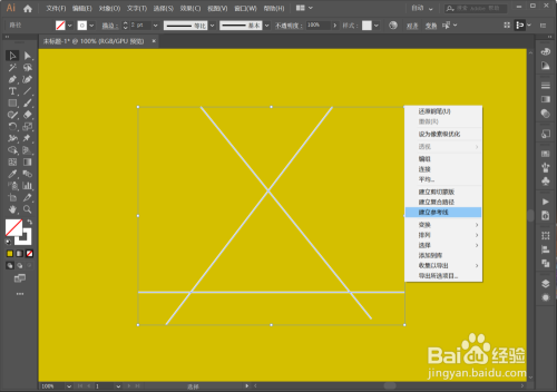 在弹出的右键菜单中选择“建立参考线”选项,点击之后我们刚刚绘制的钢笔路径就自动转换为参考线了。
