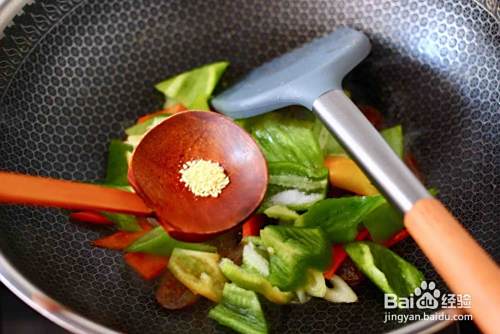 再放入蒜末和胡萝卜,继续小火翻炒片刻。