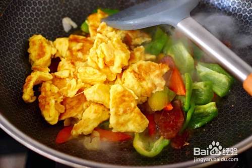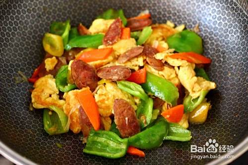 腊肠一定要提前蒸熟再来和鸡蛋炒哟,没有鸡蛋,也可以用其它的禽蛋代替哟……