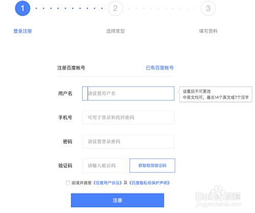 第一步,先注册百度账号,如果自己已经有账号,就不需要再重新注册。这一步比较简单,基本不会有太大问题。不过最好,可以使用之前就已经注册过的账号,这样可以省时省力。