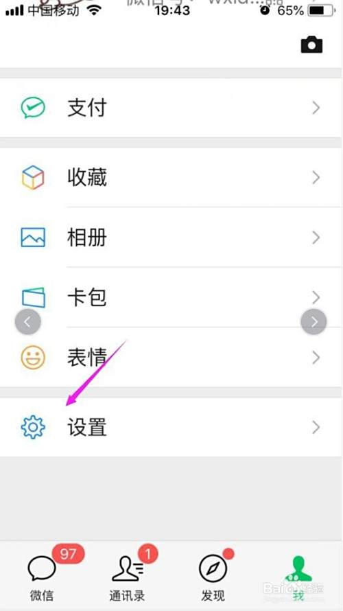 首先用苹果手机进入微信接着点击“我”选项,如图所示;