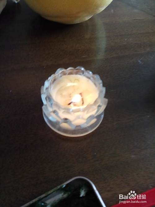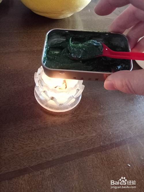 天气还是蛮冷的,所以凡士林不一会儿就凝固了,这时候我们用一个小蜡烛,把它加热,使其融化,搅拌好之后,等它冷却,