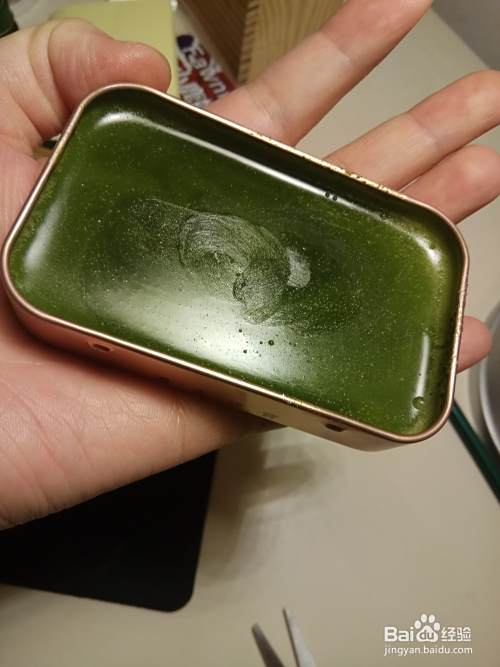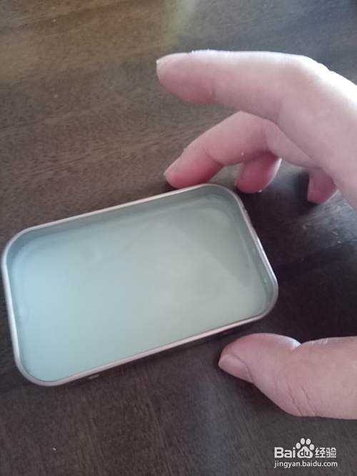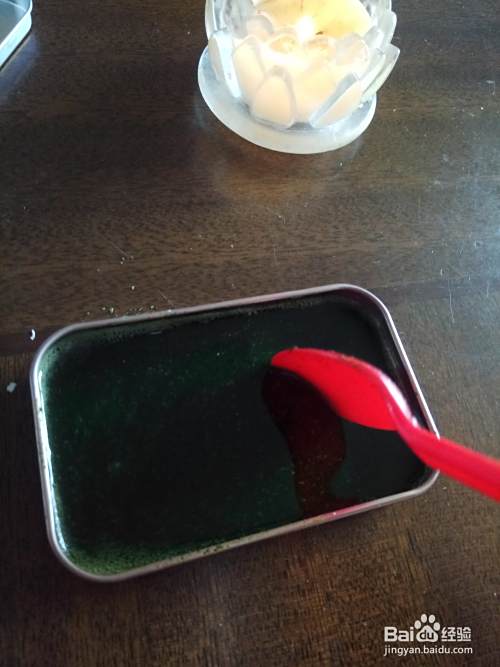 我们洗干净一个小铁盒子,用来存放祛斑霜,先把融化的凡士林倒一些到小盒子里面,