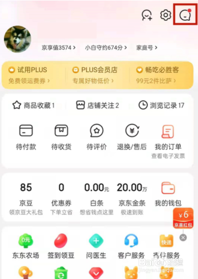 打开京东,点击右下角我的,点击右上角消息图标。