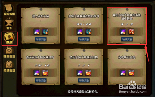 每日委托任务中,有困难领主材料自选礼盒。只需要生产5个任意物品,就可以完成;比如生产5个喇叭或传送卷轴就可以完成,属于点击就送的奖励。
