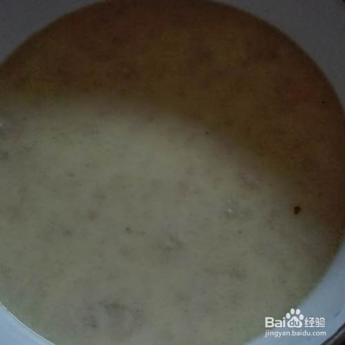 把锅里的汤倒入鸡蛋里,边倒边用筷子搅拌。
