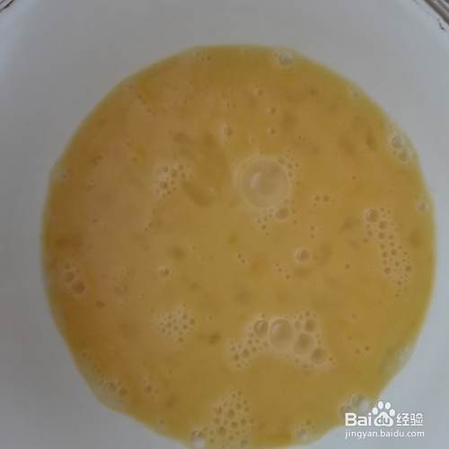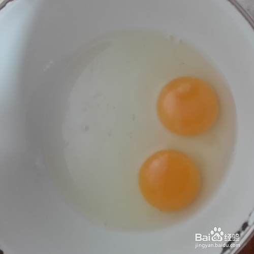 打两个鸡蛋在碗中,拿筷子把鸡蛋搅拌成糊。