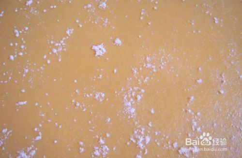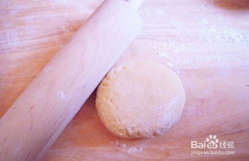 然后在面饼上洒上油摸匀,再撒上面粉,用毛刷子给面粉再扫掉。