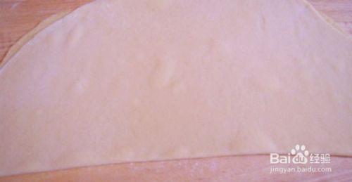 面皮对折两层。再擀擀,在洒上油摸匀,再撒上面粉,用毛刷子给面粉再扫掉对折(就4层了)然后在擀薄点。