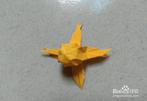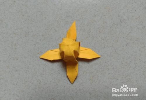 将步骤4中得到的四个角向下折,再转到没有折叠的一面,将左右角分别折到中心线,将上角向下折。 剩下的三面的折法都是一样的。