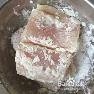 加入玉米淀粉,让鱼排裹上淀粉。如果太干裹不匀,可以加一丢丢水。