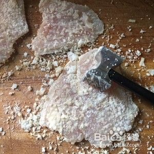 沾好后再用肉锤敲打一下,使鱼排肉质松软。