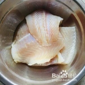 鱼排洗净切成三块加入适量盐和料酒腌制半小时。