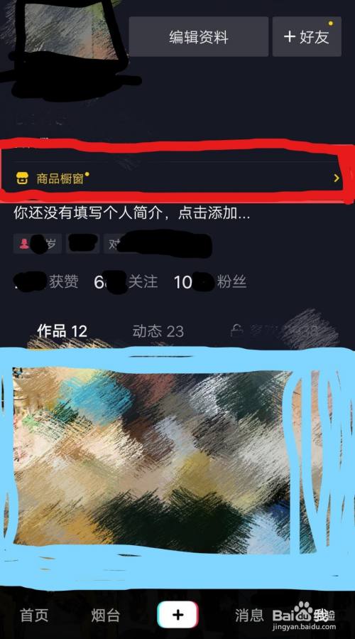 打开抖音app,在个人主页点击“商品橱窗”
