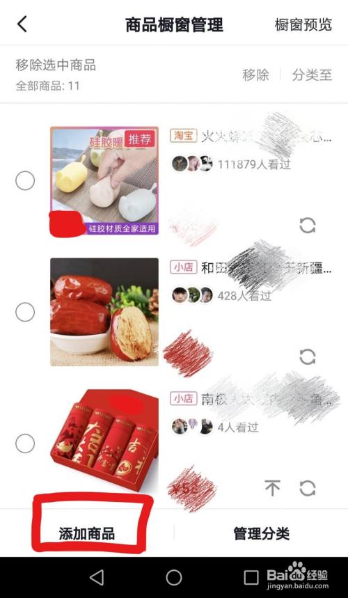在“橱窗管理”页面中,点击“添加商品”