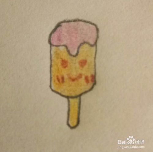 最后我们用红彩笔给他画上卡通笑脸,这样冰棍我们就画好了!