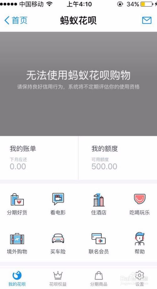 原因三:花呗当面花每月额度已用光,无法在当前店铺付款。