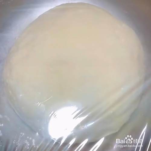 再面粉里再加上适量的开水,教程絮状,再加少许食用油,和成面团。盖上保鲜膜,醒发20分钟。