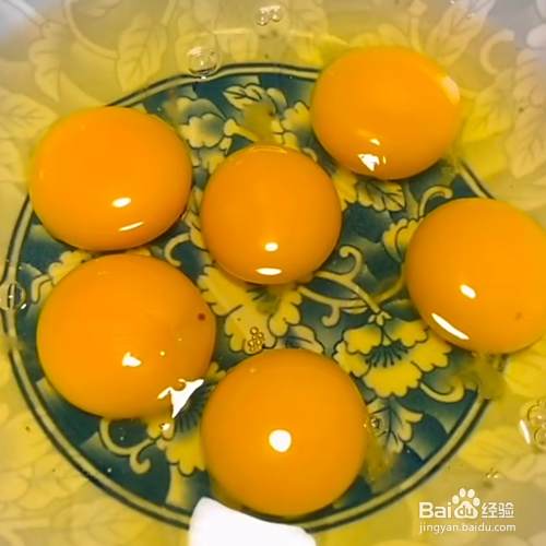 碗中打上六科鸡蛋,搅拌均匀,入油锅滑熟铲碎、盛出备用。