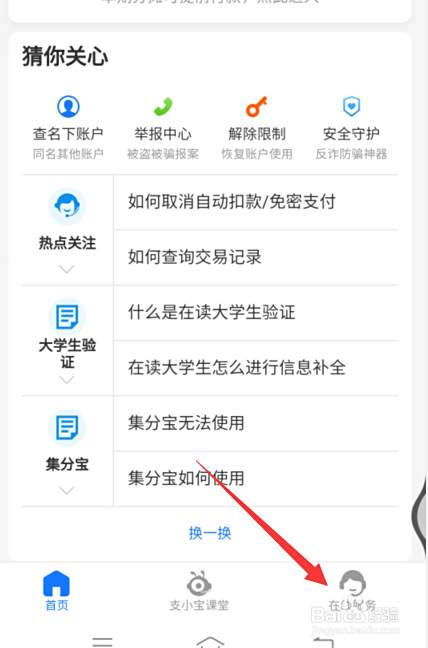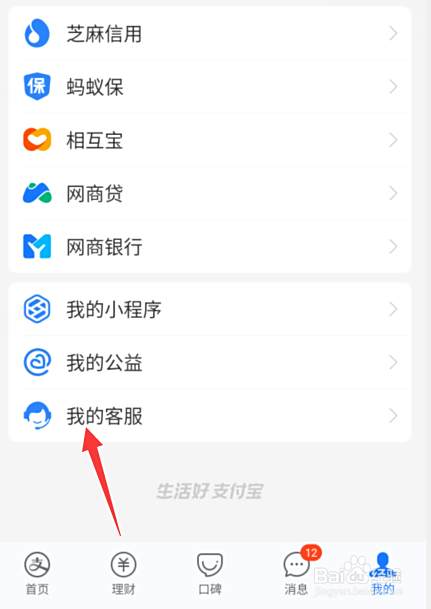 点击支付宝的我的客服。