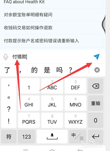 输入【付错款】点击发送按钮。
