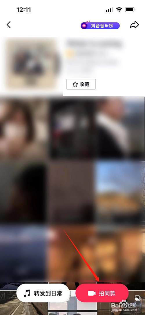 在抖音主页面中通过音乐图标进入视频列表,就可以通过拍同款入口来拍摄同款视频了,具体操作请看下方: