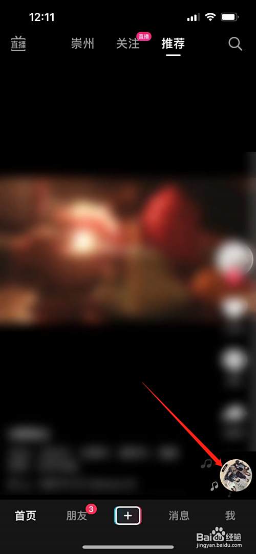 打开抖音进入主页面后,点击要拍同款视频的右下方音乐旋转图标。