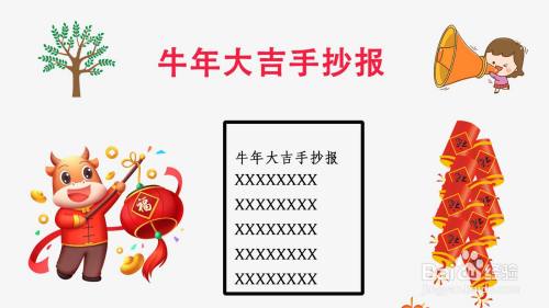 最后,使用黑色画出文本框,再写上牛年大吉手抄报的文字就完成了