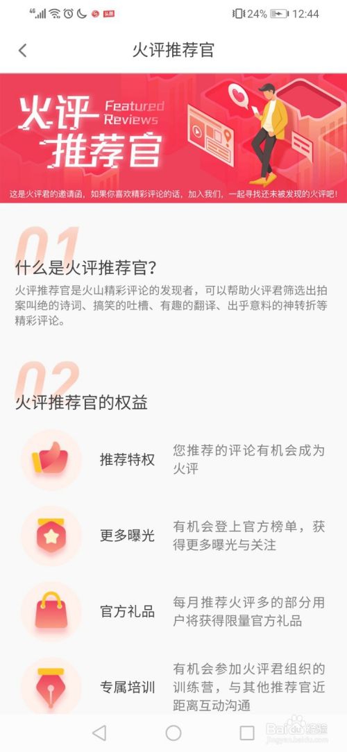 在火评推荐官的主页上,我们可以发现火山小视频对火评推荐官的定义,他们的权益和福利。