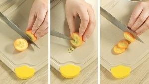金桔对半切开,去籽、切丝。
