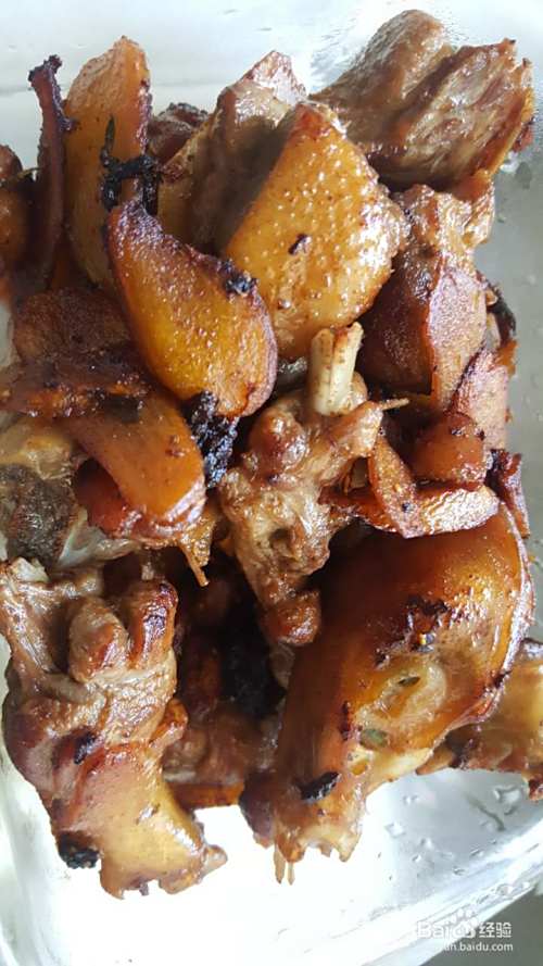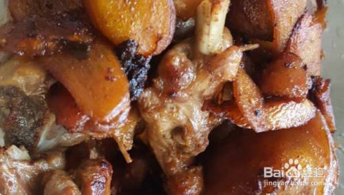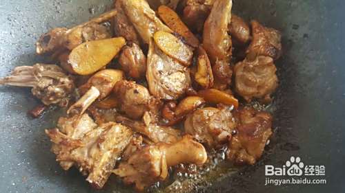 差不多了,看鸭肉表面都有点焦黄了。就可以放料酒,酱油,鸡精啥的。量也是很随意,不够咸就多放点。最后还有点甜(可能是我的酱油其实是豉油)