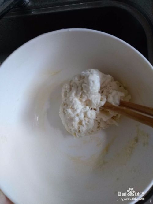 继续用筷子搅拌一会儿,使之形成一个整块面团,光滑细腻为止,用一根筷子可将其整体挑起。
