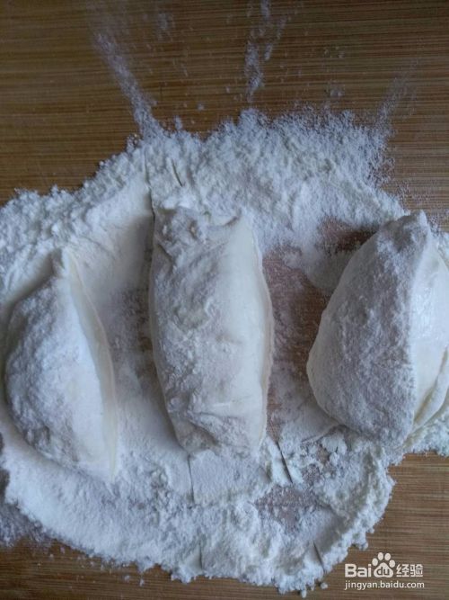 将面团表面沾上薄薄的一层干面粉,然后切成小坨。