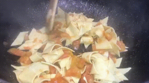 炒锅内倒油,油热后放入西红柿块,小火翻炒到西红出汤汁。