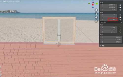 将窗户绕Z轴旋转到合适角度,如下图
