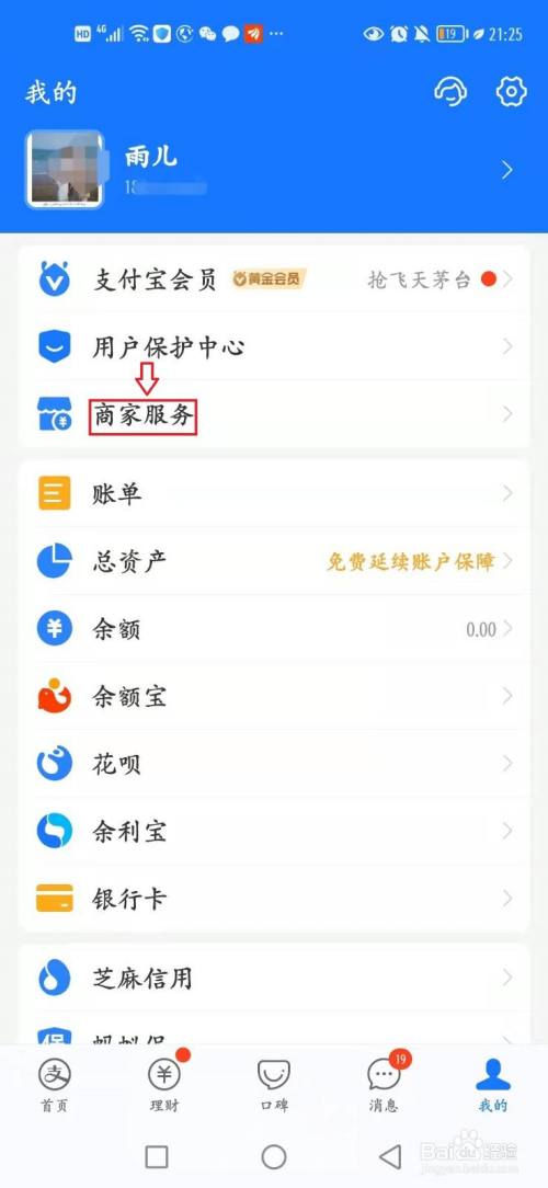 打开支付宝APP,点击“我的”,进入个人主页,点击“商家服务”,进入店铺页面。