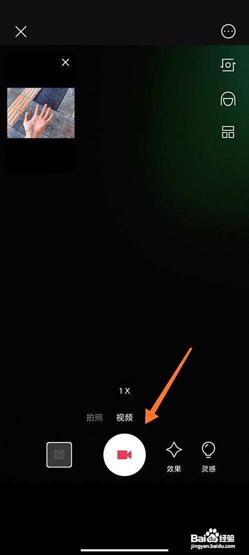 左上方显示预览页面,点击拍摄,拍摄视频。