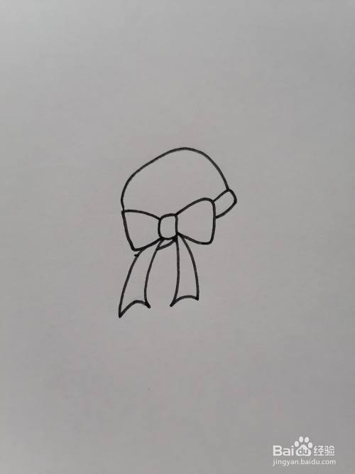 在蝴蝶结下面画一个不规则的大半圆,再画一条波浪线