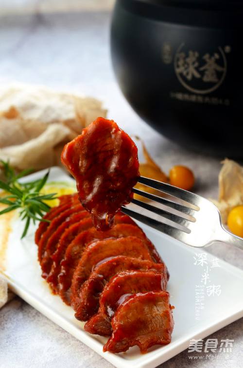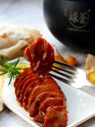 10等苏泊尔鲜呼吸压力锅排完气之后,打开锅盖,选择“开盖收汁'功能进行收汁,等压力锅结束工作之后,将叉烧肉取出,切片即可食用!