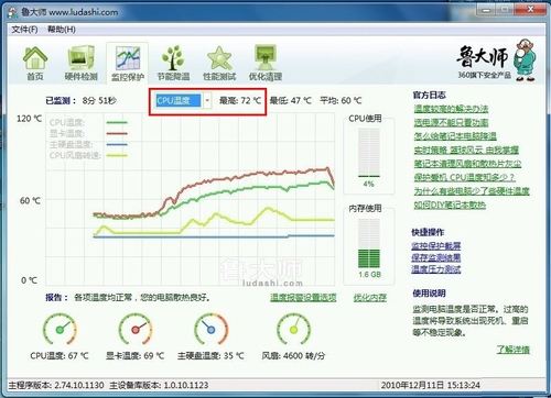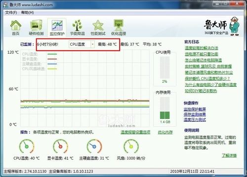 网友使用的本本是华硕的U80笔记本,用了一年了左右,本本一切还好,就是最近几个月觉得左侧出风口出来的风很热。每次风扇的声音也很大。温度比买来的时候也上升很多。看看温度。