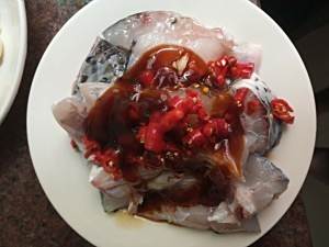 草鱼切好刮黑膜去牙齿(这两样最腥),用盐摩擦稍微腌一会,期间下个米的时间就可以清洗干净