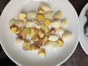 准备两头蒜和一块姜以及小米椒(可不加),蒜最好直接剥皮,我比较懒只准备了一头蒜,且是拍开🤣