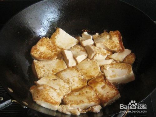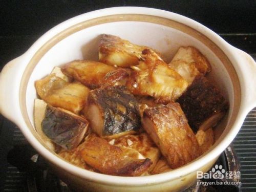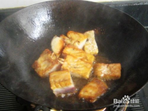咸青鱼用水浸泡半天洗净切块,用油煎成两面金黄,盛出