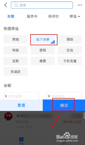 选择消费类型,比如:点击【线下销售】,再点击“确定”。